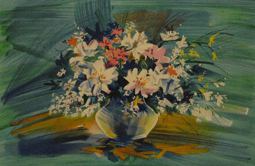 克劳德·马尔斯《以绿色为基底的花束》 原版石版画 艺术家签名 限量版 图像尺寸 40 x 59 厘米