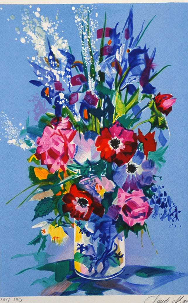 克劳德·马尔斯 (Claude Mars) <马略卡花瓶里的花束> 原创石版画 艺术家签名 限量版 图像尺寸 40 x 25 厘米