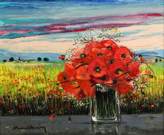 米歇尔·亨利《田野里的虞美人花束》油画第12号