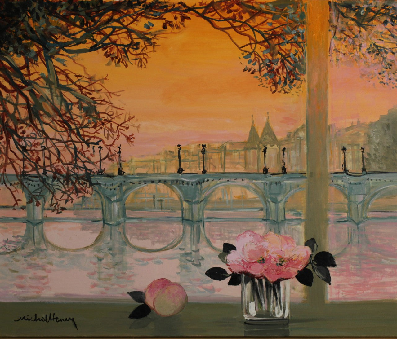 米歇尔·亨利《新桥上的玫瑰与李子》油画,尺寸 20