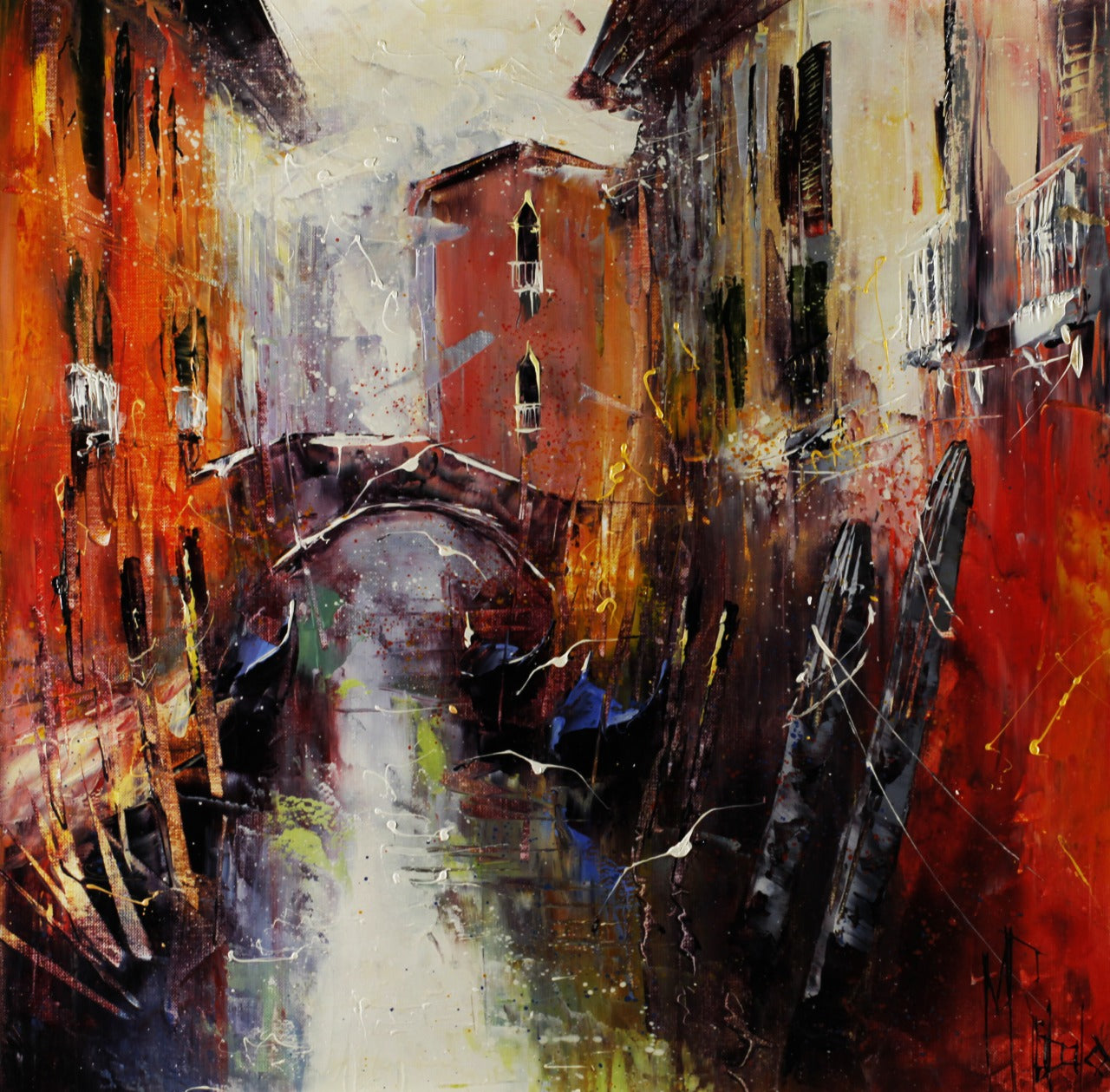 Manuel Luballo [威尼斯的桥] 60x60cm 油画,2019年[含画框]