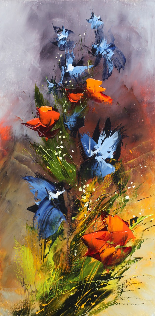 Manuel Lluballo的花束同时代表了瞬间和空间中的运动轨迹。它捕捉到了花朵散落在空中的瞬间的画面。大胆的触感表达了空气的微妙振动和空间的颤动。花是真实的,同时也是虚幻的。它既是现实,又是幻想。他的展览定期在法国画廊和日本著名百货公司举办。
