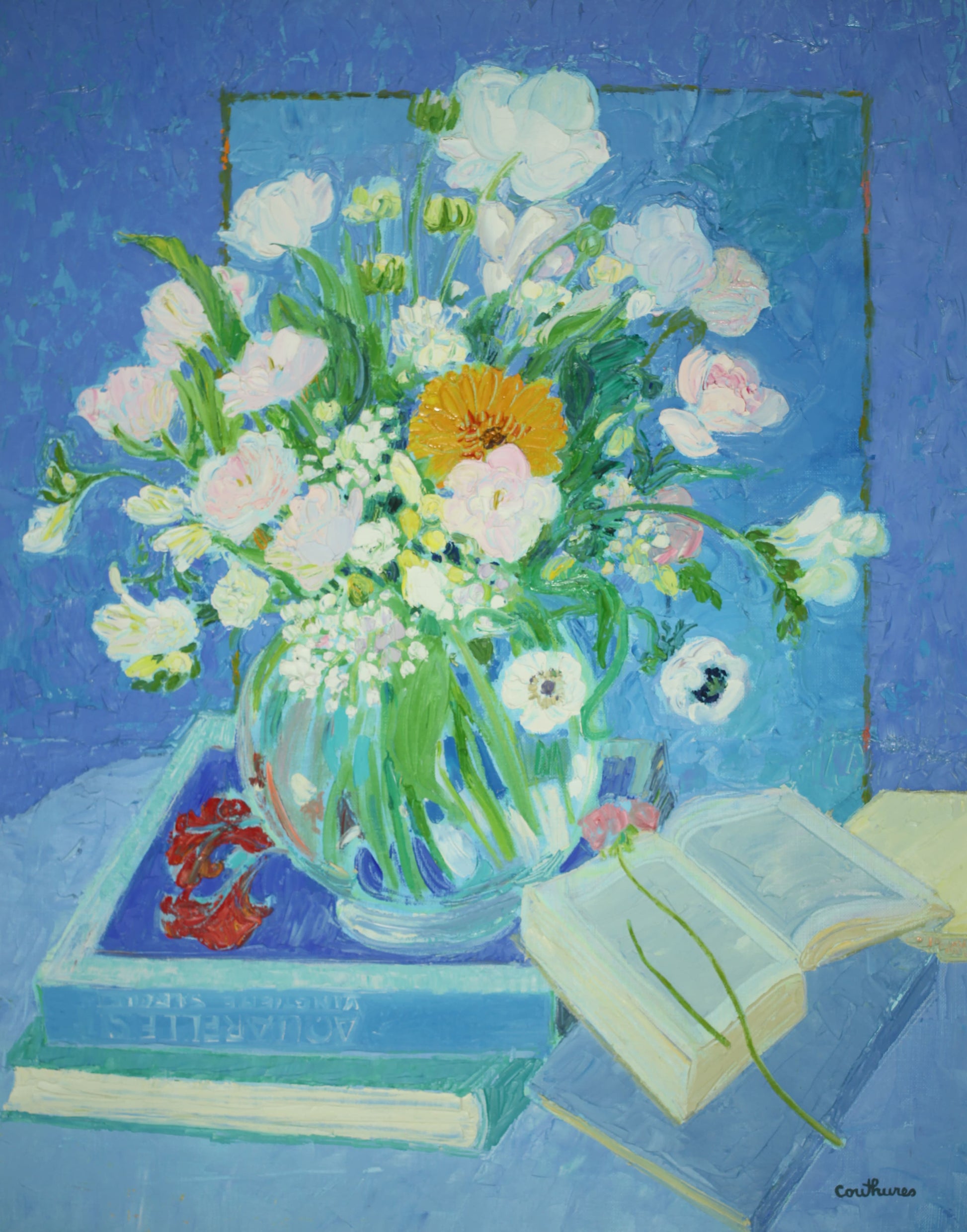 丹尼尔·库图尔 [蓝色花束与书] 油画 No. 25, 2006 [带框]