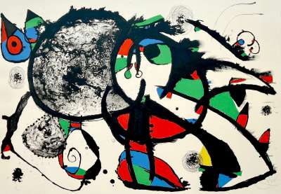 胡安·米罗 [致敬安德烈·马松] 1977 图像尺寸 63x90cm 原作石版画