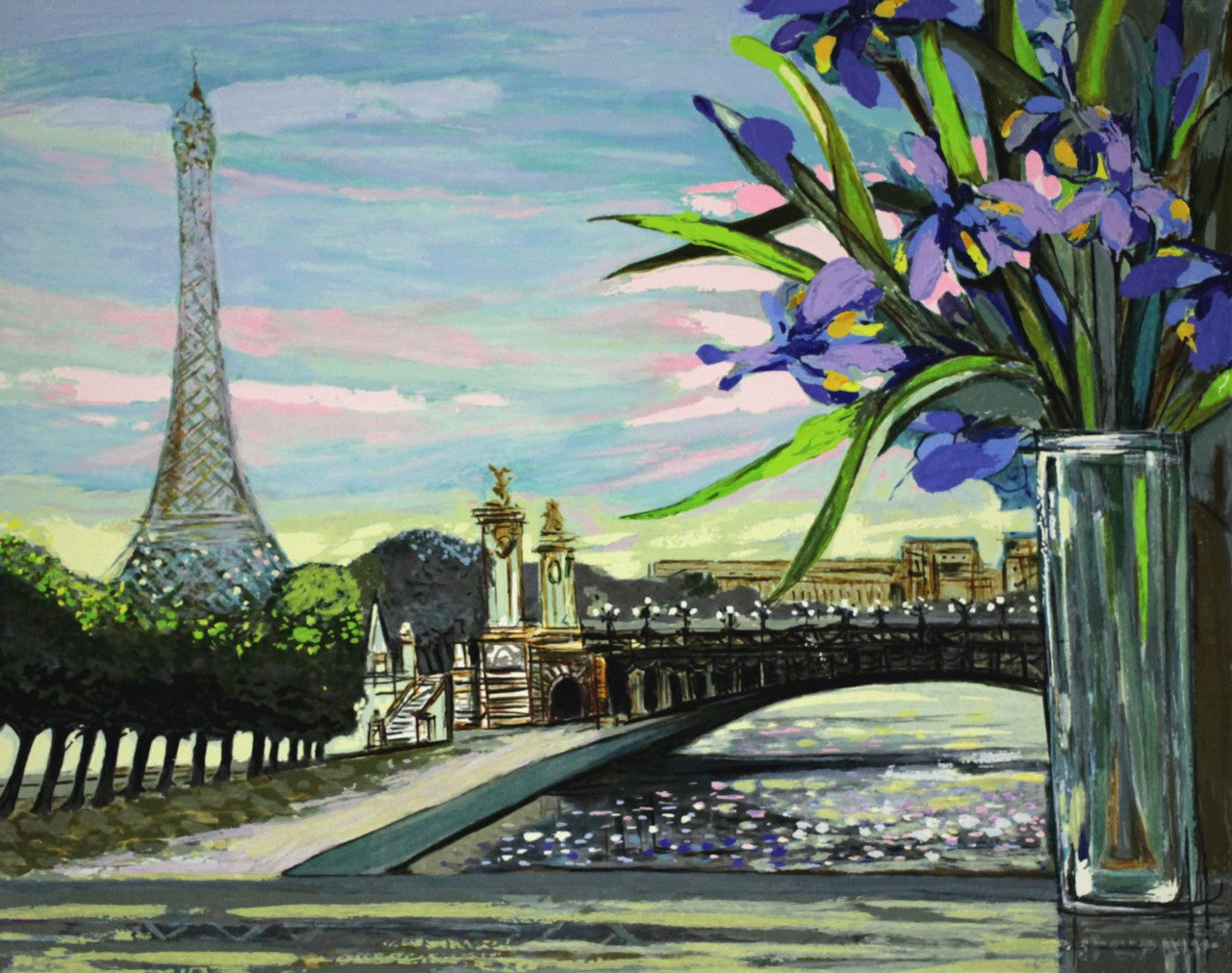 米歇尔·亨利 [埃菲尔铁塔和鸢尾花] 原作丝网印刷,艺术家签名 [带框]